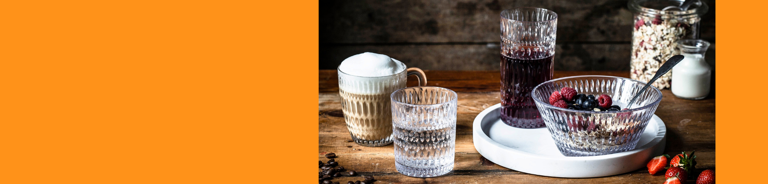 Cristal prensado con patrón arabesco. Platos, vasos, boles, tazas..