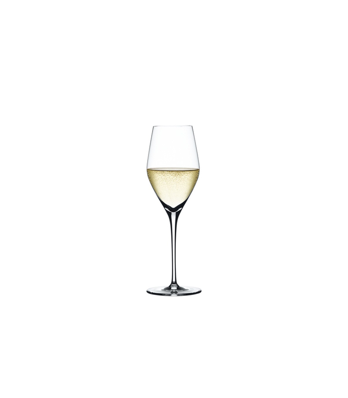 La copa de champagne está diseñada para potenciar la complejidad aromática y realzar la experiencia de degustación. Su forma en diamante, con ángulos definidos, ofrece mayor espacio para la evolución de los aromas, mientras que el cáliz amplio intensifica las capas aromáticas y el borde abierto resalta matices que una copa tipo flauta no logra destacar.