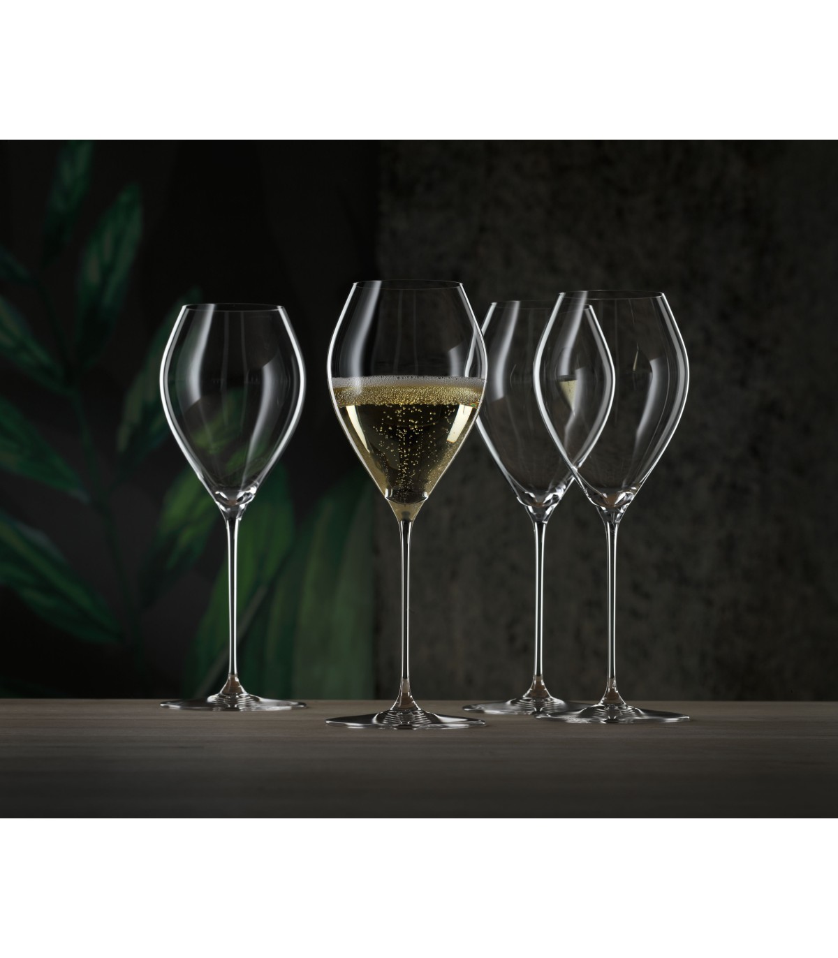 Su diseño tipo tulipa destaca por curvas elegantes y proporciones equilibradas, dando espacio para que los aromas se desplieguen e intensifiquen. Además, incorpora un "punto de efervescencia" que facilita la formación de burbujas en los espumosos de todo tipo.