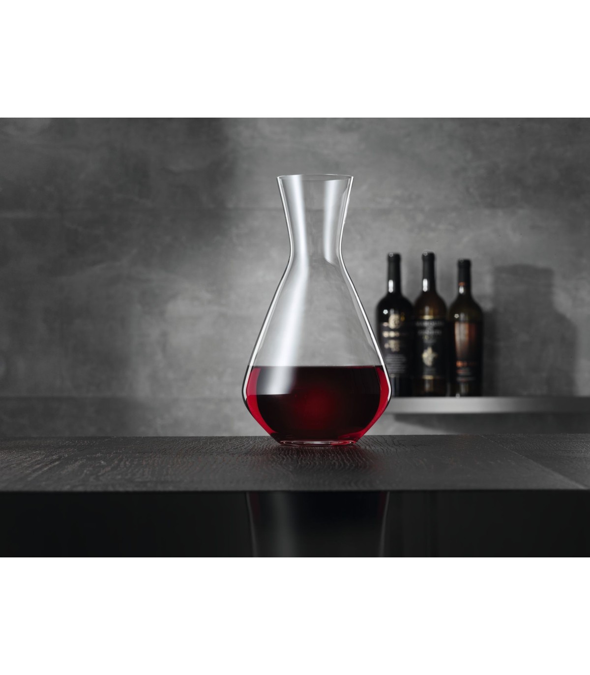 El decantador SPIEGELAU mejora la presentación y la aireación de sus mejores vinos, convirtiéndose en un elemento destacado en cualquier mesa. No solo funciona como un impresionante centro de mesa, sino que transforma el ritual de degustación en un viaje sensorial. Al servir el vino, observe cómo se airea y libera sus aromas, permitiendo disfrutar de sus matices de sabor y delicados aromas en cada copa. Por su elegante diseño y amplia capacidad también es perfecto para utilizar como jarra para servir otras bebidas.