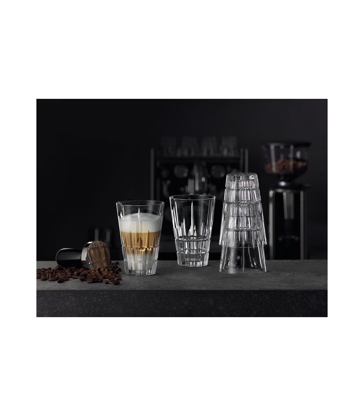 El set incluye 4 vasos Latte Macchiato Perfect Serve, perfectos para quienes disfrutan del café con una experiencia visual y sensorial superior.