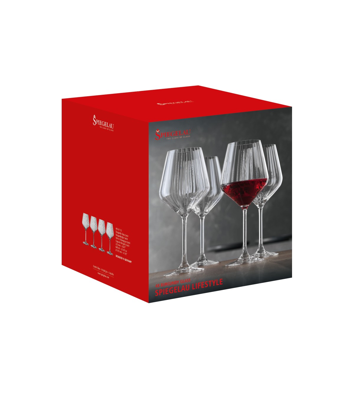 La copa Borgoña Lifestyle de SPIEGELAU ha sido diseñada para resaltar la complejidad aromática de vinos tintos elegantes y delicados como Pinot Noir, Nebbiolo o Gamay, así como de blancos estructurados como Chardonnay. Su forma amplia y en diamante equilibra la acidez, potencia la fruta y permite que el bouquet se despliegue plenamente, revelando todos los matices del vino. La colección Lifestyle, con su decoración lineal y un diseño moderno, combina estilo y funcionalidad, aportando brillo y un efecto óptico atractivo que enriquece cualquier mesa. Fabricadas a máquina en cristalin de alta calidad, estas copas ultramodernas son elegantes y resistentes, aunque pueden presentar ligeras variaciones propias de la producción. Aptas para lavavajillas, resultan prácticas y sofisticadas. El set incluye 4 copas Borgoña Lifestyle, ideales para disfrutar de grandes vinos con estilo contemporáneo.