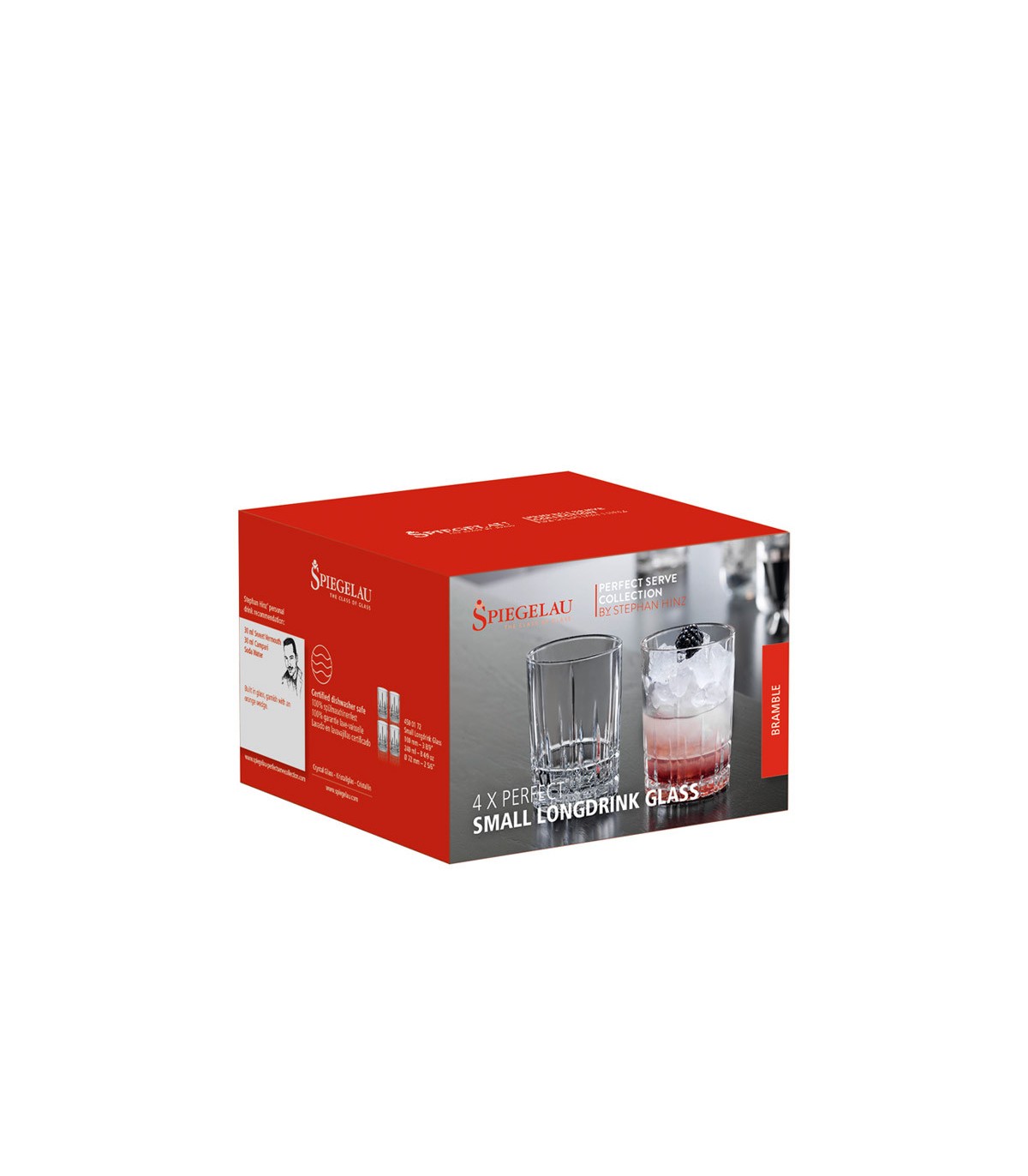 El vaso Universal Perfect Serve de SPIEGELAU combina versatilidad y elegancia, convirtiéndose en la elección perfecta para múltiples bebidas. Su diseño alargado y compacto lo hace ideal para servir licores con hielo, agua, zumos o cócteles icónicos como el Americano o el Pisco Sour. La colección Perfect Serve, creada junto al maestro coctelero de renombre internacional Stephan Hinz, está diseñada con precisión para ofrecer el tamaño adecuado a cada cóctel, ya sea clásico, moderno o creativo. Fabricados a máquina en cristalin de alta calidad, estos vasos pueden mostrar ligeras variaciones derivadas del proceso de producción. Aptos para lavavajillas, combinan practicidad y sofisticación. El set incluye 4 vasos Universal Perfect Serve, imprescindibles para llevar la cultura del bar profesional a casa.
