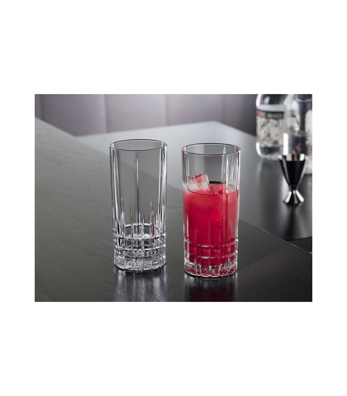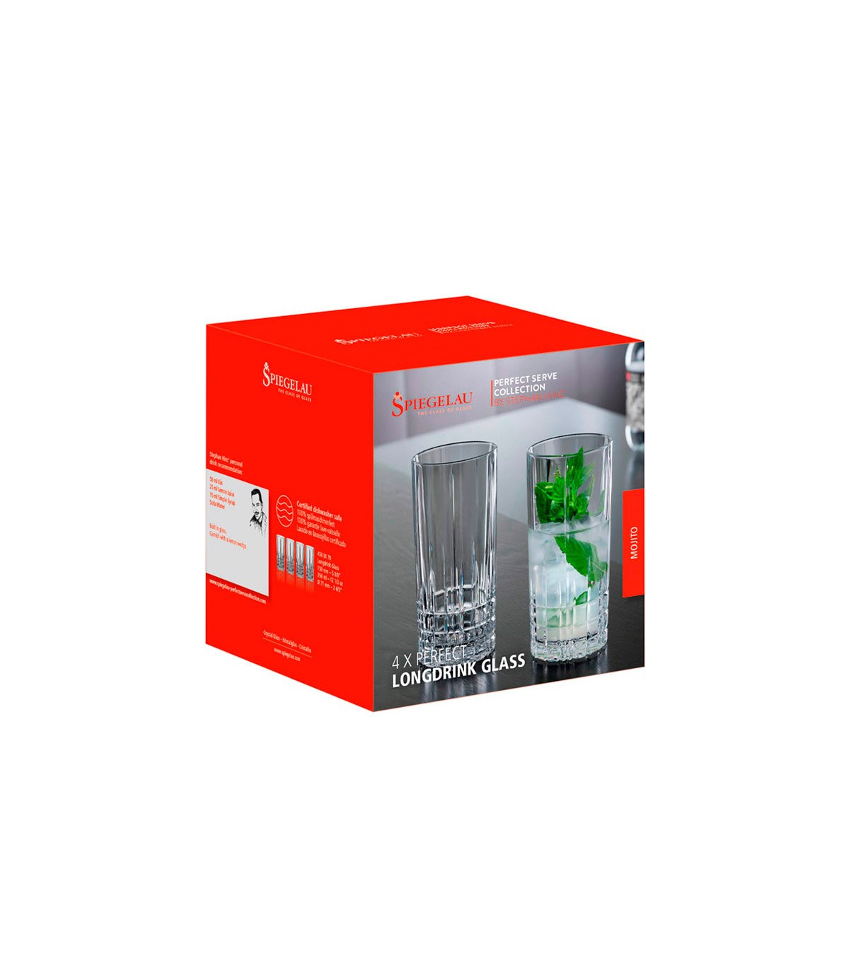 El vaso Long Drink Perfect Serve de SPIEGELAU es ideal para servir cócteles y bebidas sin alcohol gracias a su silueta alta, que conserva la efervescencia, y a su capacidad generosa, que ofrece espacio suficiente para líquido y hielo. La colección Perfect Serve, desarrollada en colaboración con el maestro coctelero internacional Stephan Hinz, ha sido diseñada para garantizar el tamaño perfecto de cada cóctel, ya sea clásico, creativo o innovador. Fabricados a máquina en cristal de alta calidad, estos vasos combinan funcionalidad y sofisticación, aunque pueden presentar ligeras variaciones propias de la producción. Aptos para lavavajillas, resultan prácticos y duraderos. El set incluye 4 vasos Long Drink Perfect Serve, imprescindibles para disfrutar cócteles y refrescos con estilo profesional en casa.