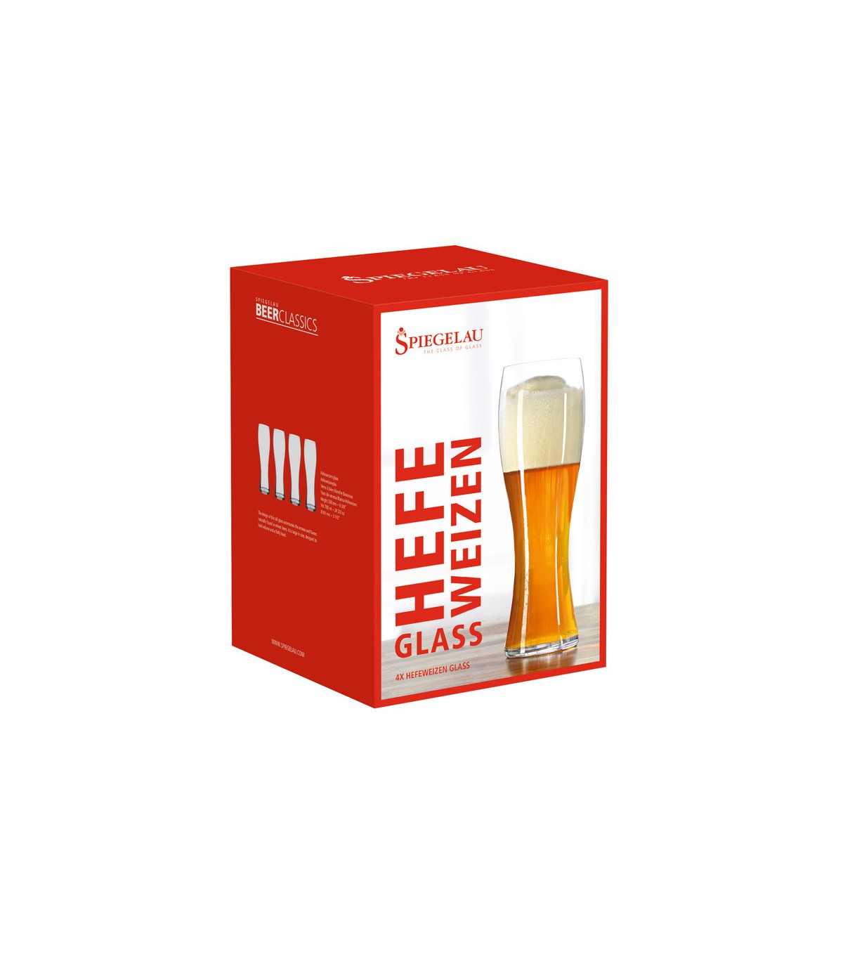 La espigada figura de este vaso para cervezas de trigo está concebida para contener un gran volumen de densa y esponjosa espuma. A diferencia de otros estilos derivados del trigo como la belga witbier o la americana american wheat beer, en la hefeweizen el trigo se maltea, imprimiéndole un sabor más dulce y rotundo.