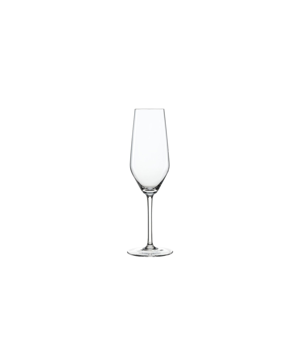 La copa de Champagne Style de SPIEGELAU es ideal para disfrutar champagnes, proseccos y vinos espumosos ligeros, frescos y secos. Su forma estilizada favorece la formación de burbujas y realza la vivacidad de cada sorbo, siendo la elección preferida de los expertos que buscan una copa fina y elegante.