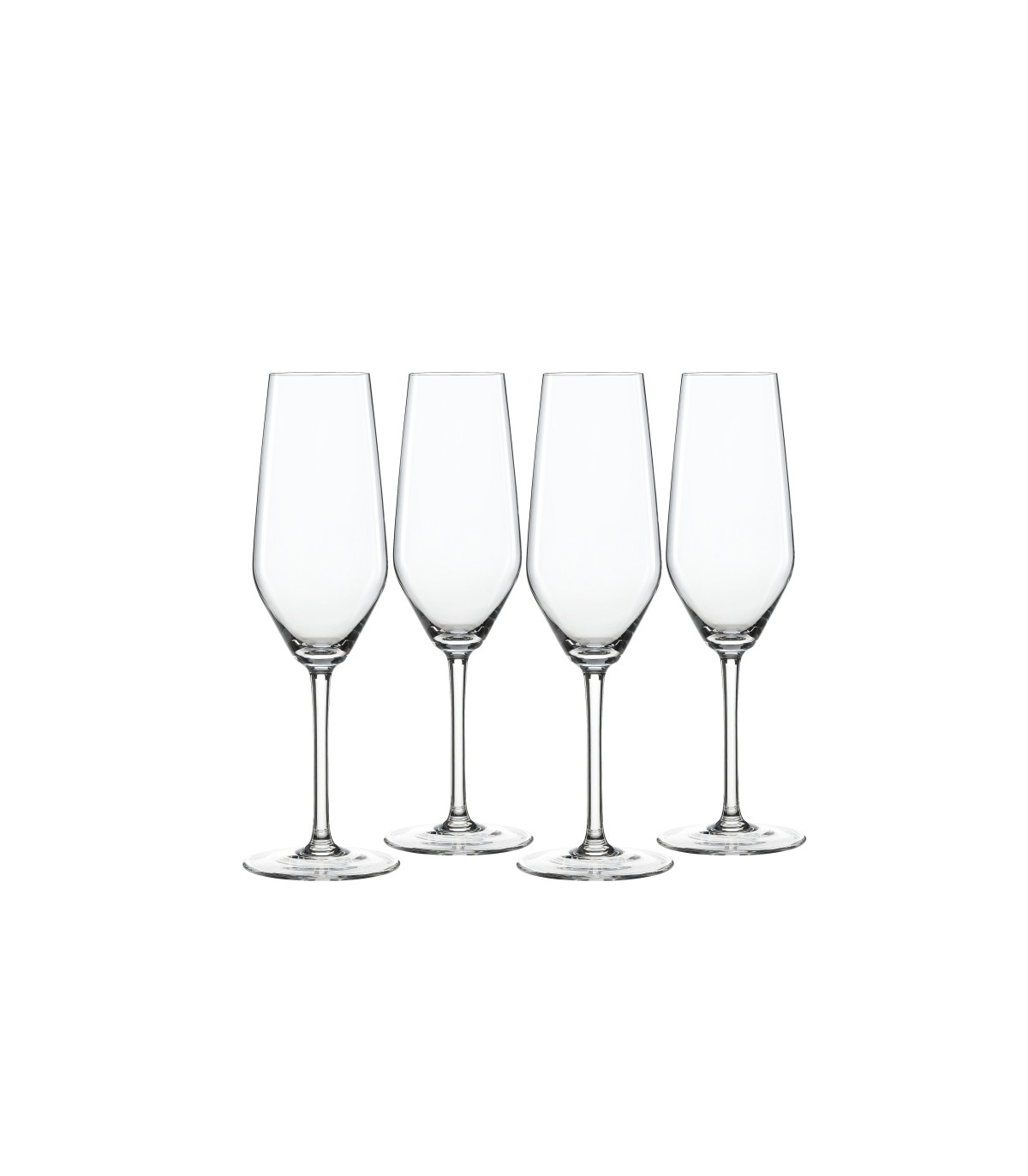 El set incluye 4 copas de Champagne Style, imprescindibles para celebraciones y brindis con estilo.