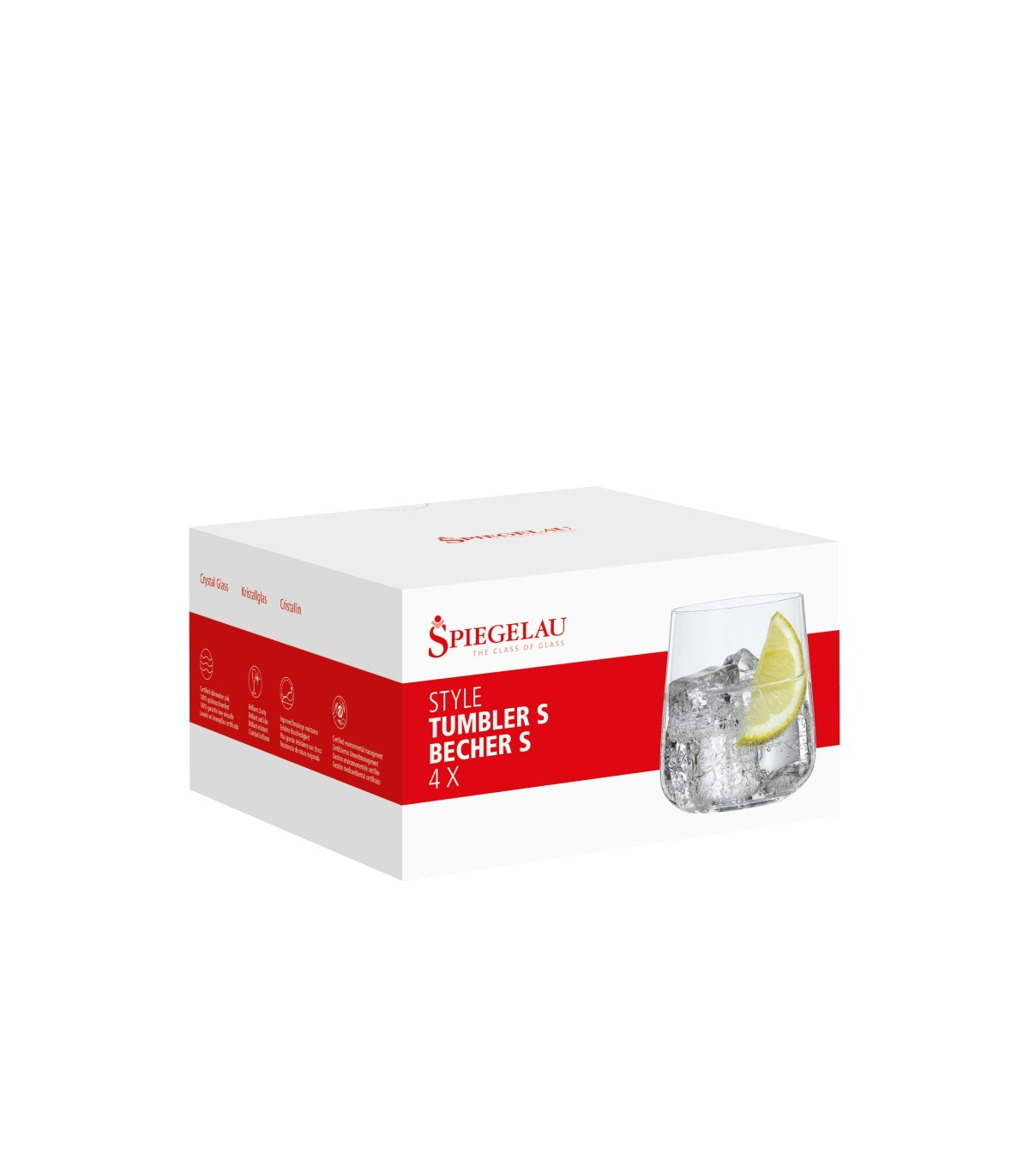 El set incluye 4 vasos Style SPIEGELAU, perfectos para cualquier ocasión.