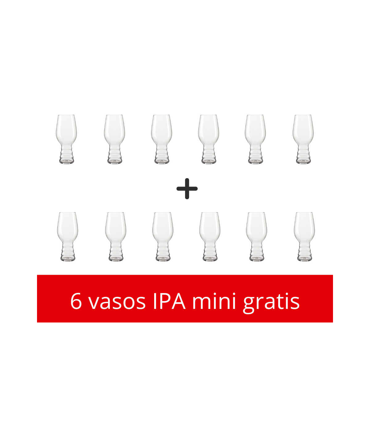 Disfruta de todo el sabor de tu IPA favorita con los mini vasos IPA Spiegelau de 40 cl, diseñados para realzar los aromas y mantener la temperatura ideal por más tiempo. Su tamaño compacto ofrece una experiencia más equilibrada y cómoda, perfecta para catas o servicio en casa. Aprovecha ahora la oferta especial 6+6, ¡lleva 12 vasos al precio de 6!